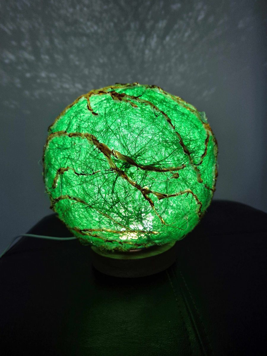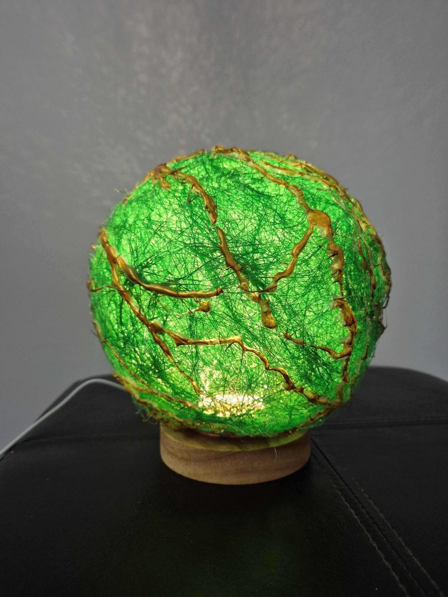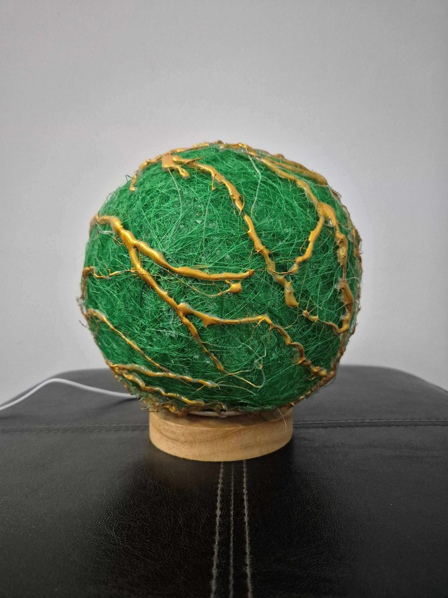 Lampă cu abajur verde, decorată cu crenguțe aurii și un joc de lumini fascinant. Știu că oriunde ajunge, oferă eleganță, căldură și un strop de magie. Un detaliu care transformă orice colț într-un spațiu special. 🌟