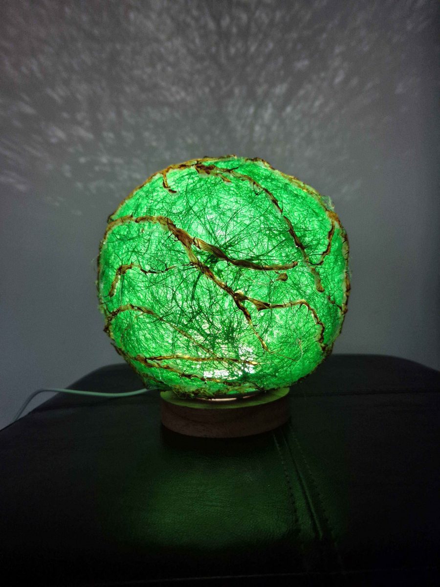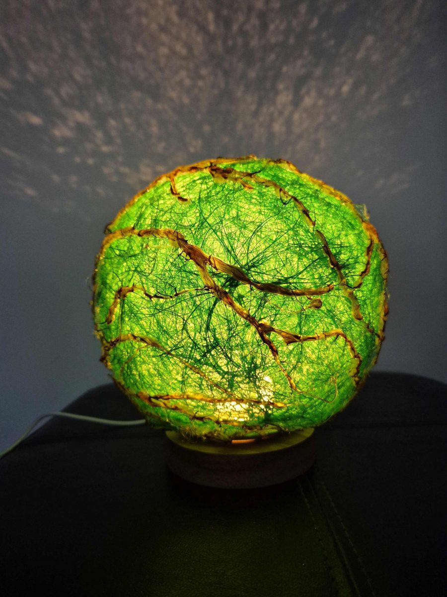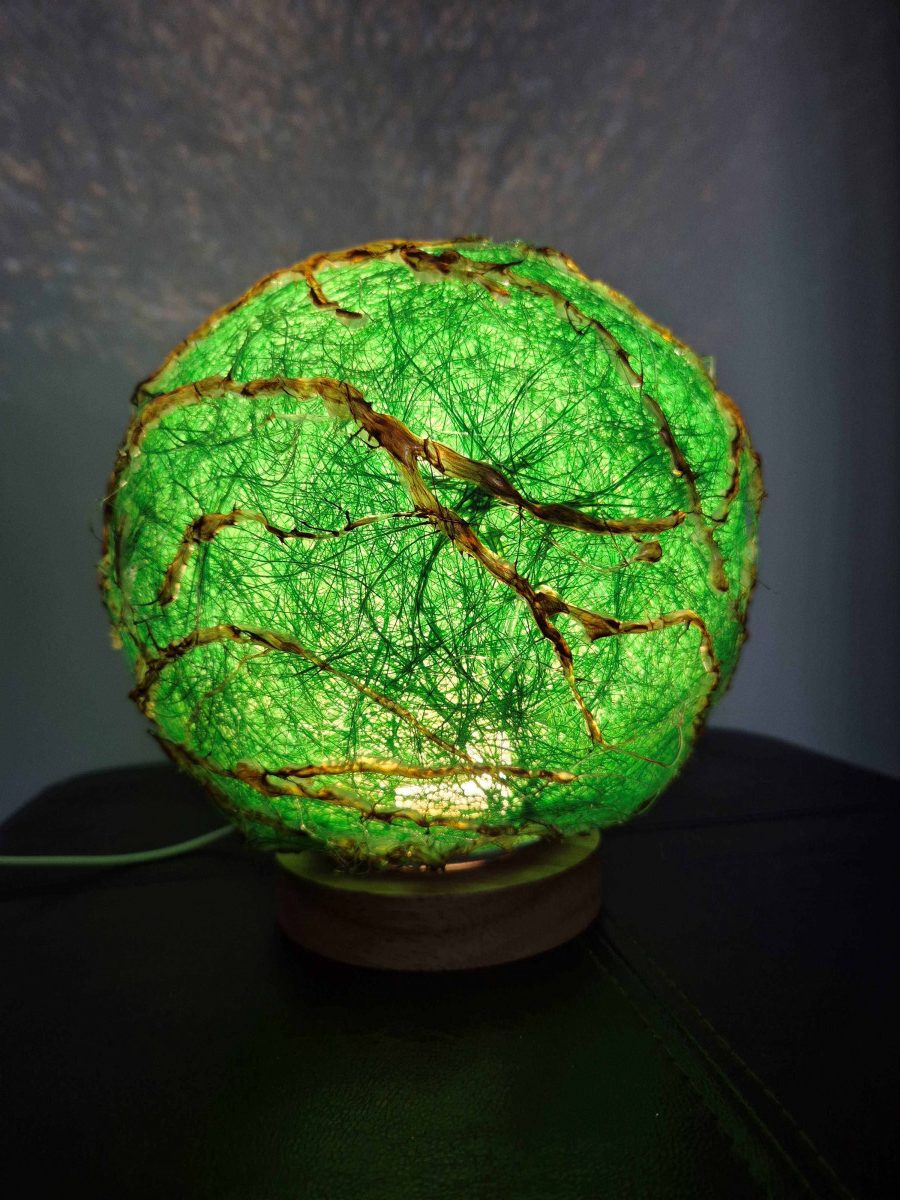 Lampă cu abajur verde din sisal.