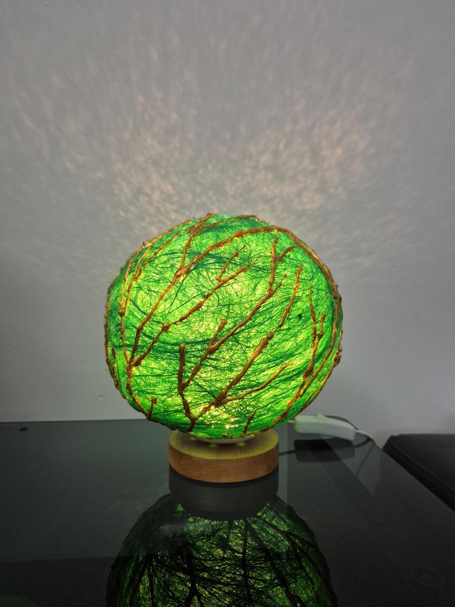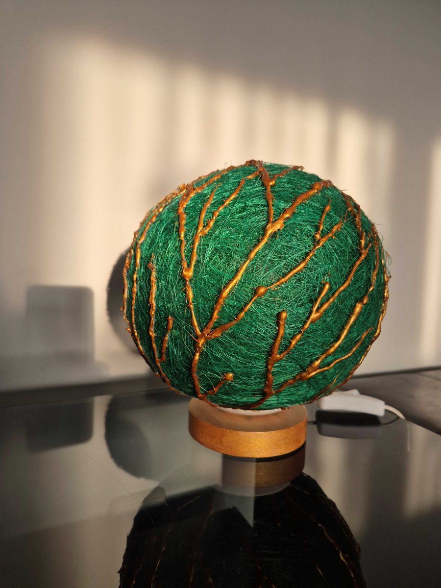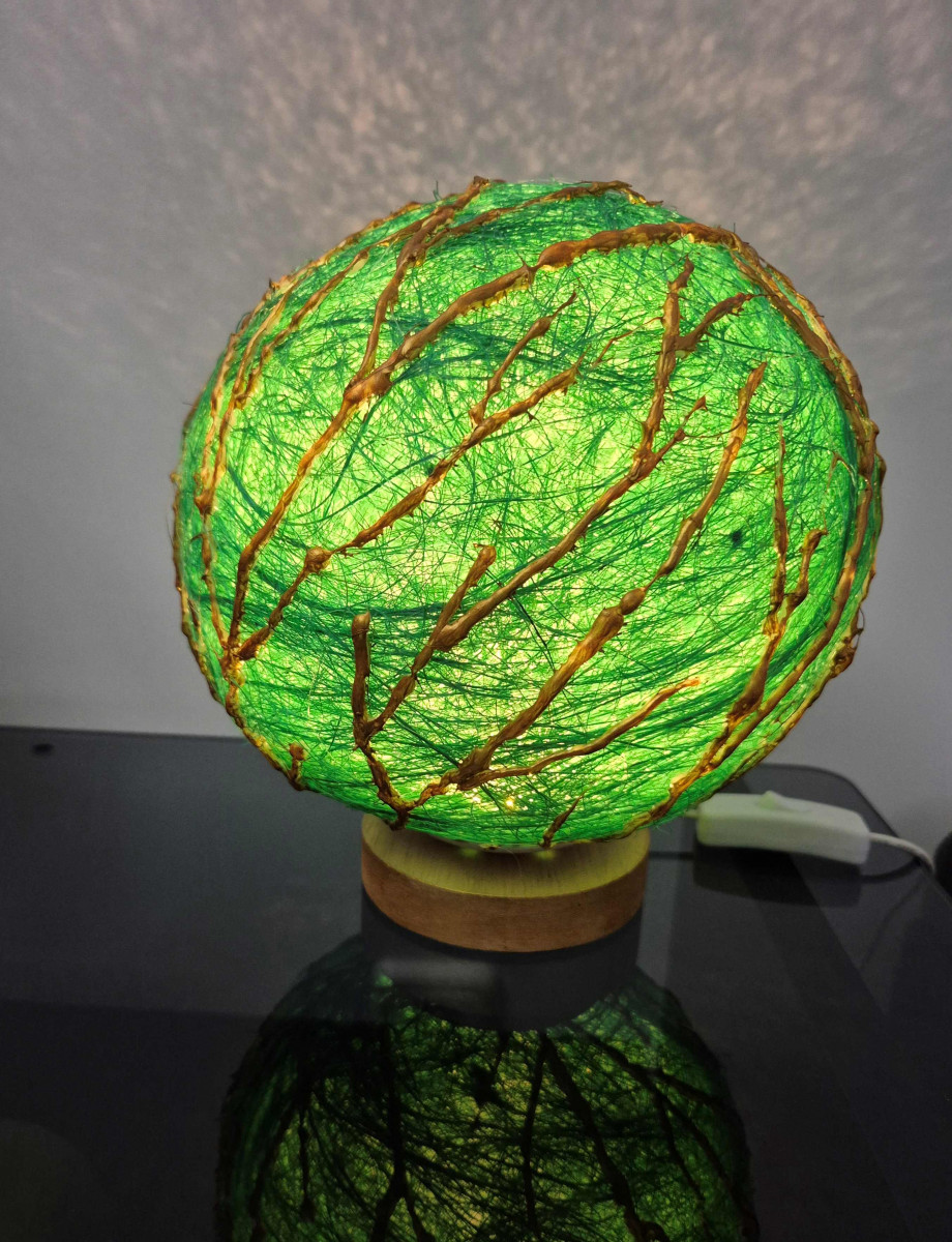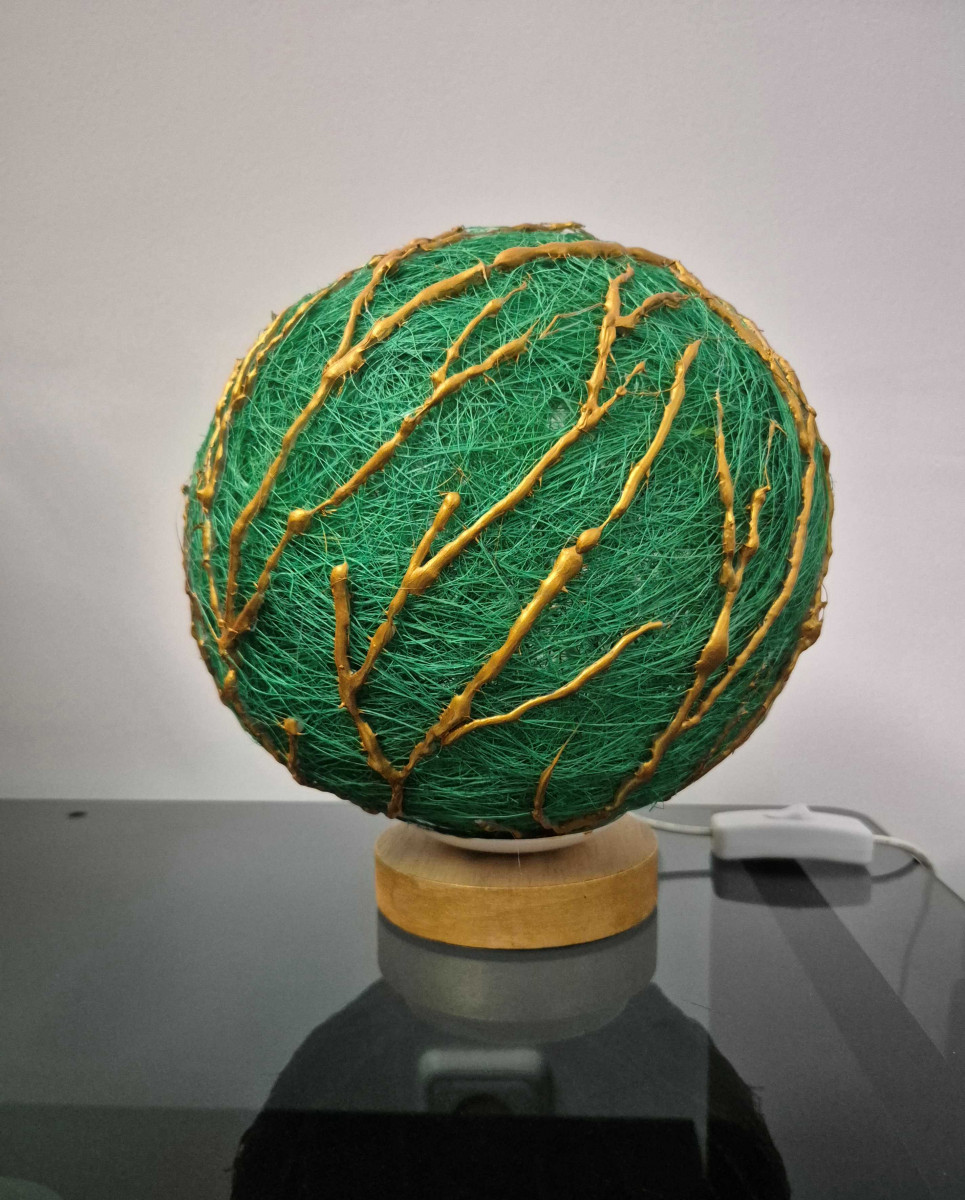 Lampă cu led, material sisal și culori acrilice.