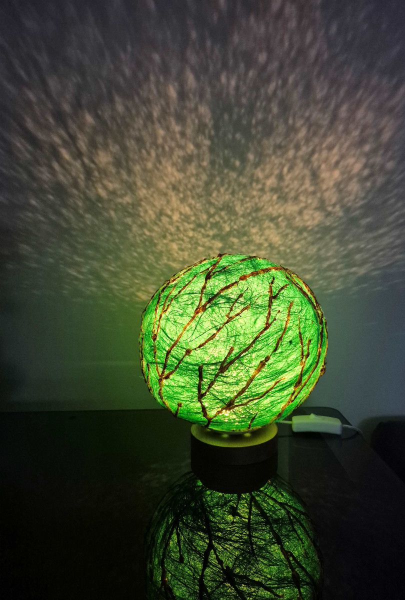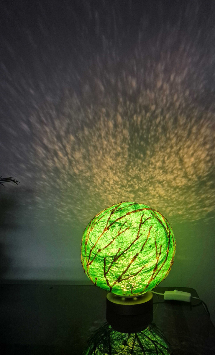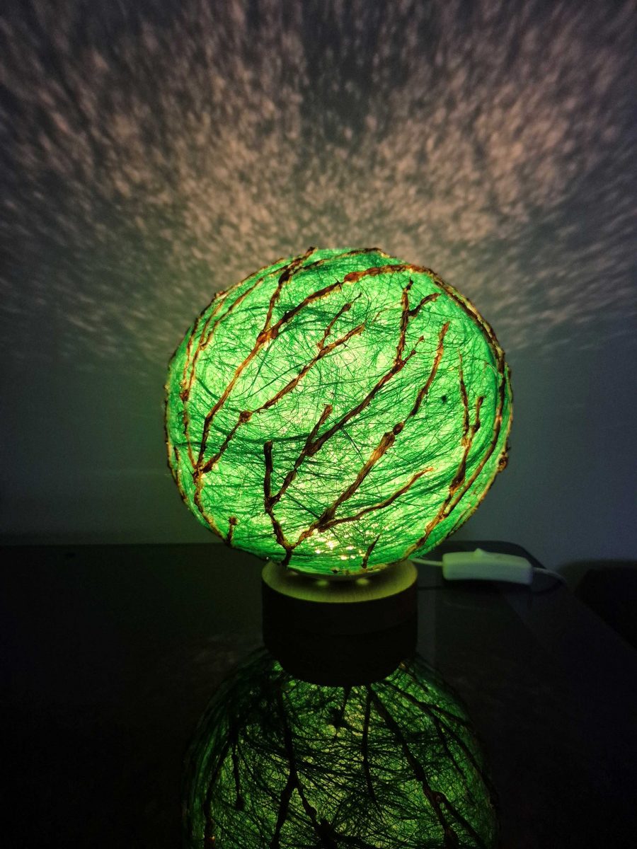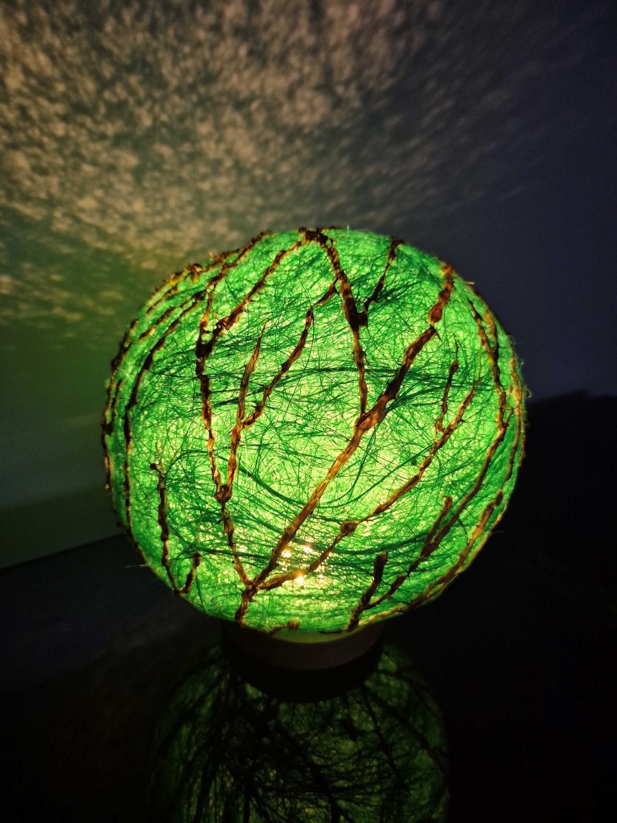 Lampă cu led, material sisal și culori acrilice.