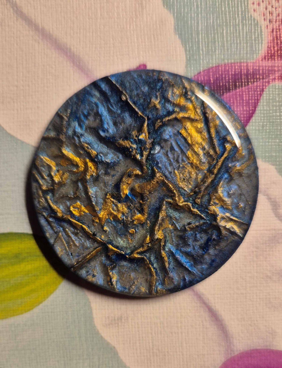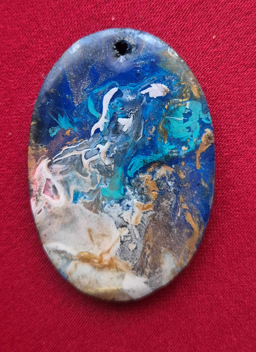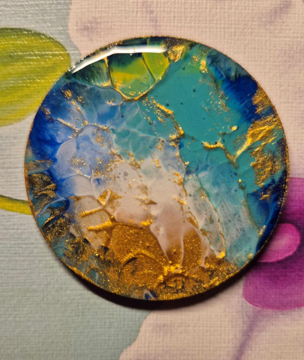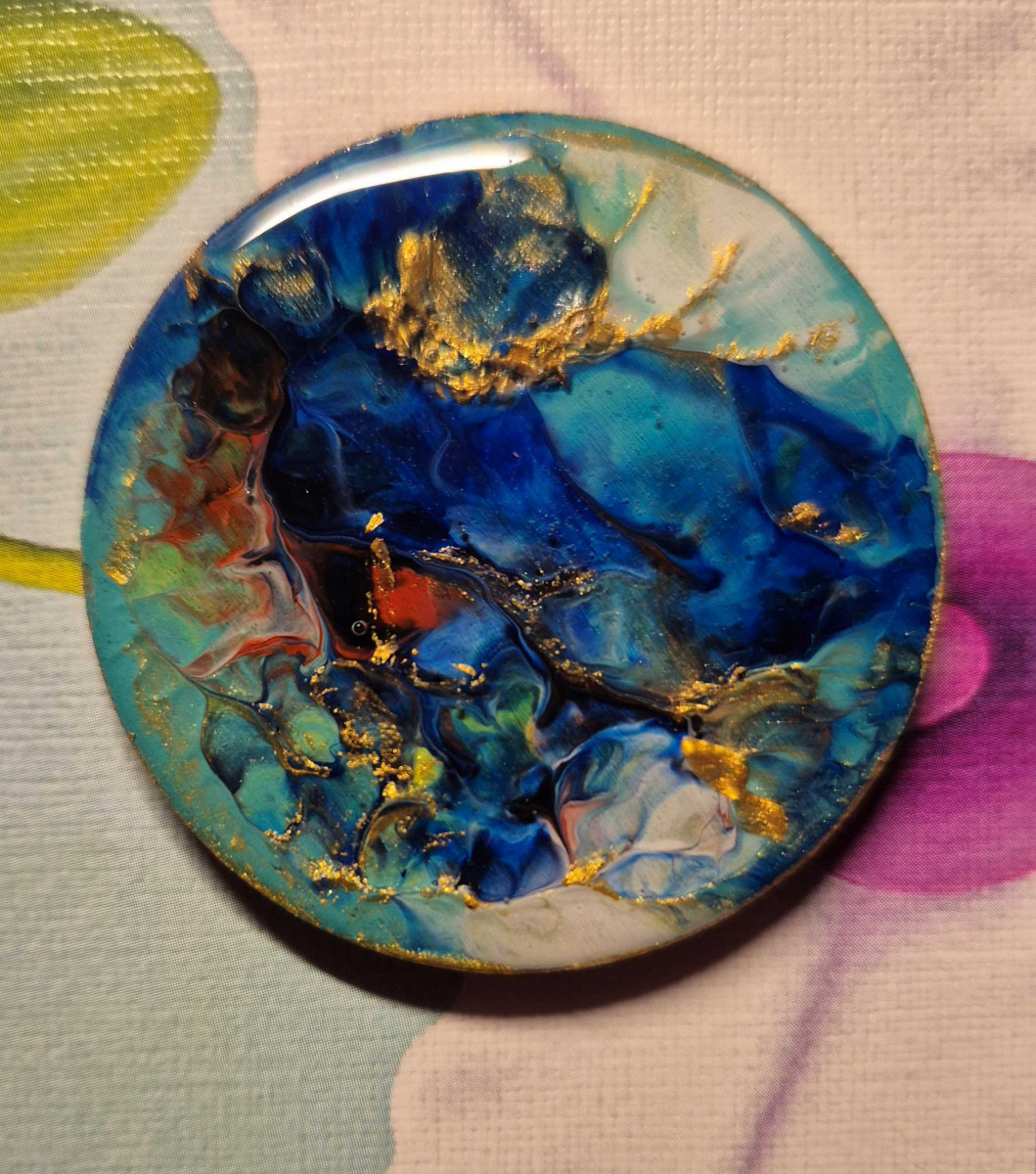 Pictură pe lemn, încapsulată cu rășină epoxidică.