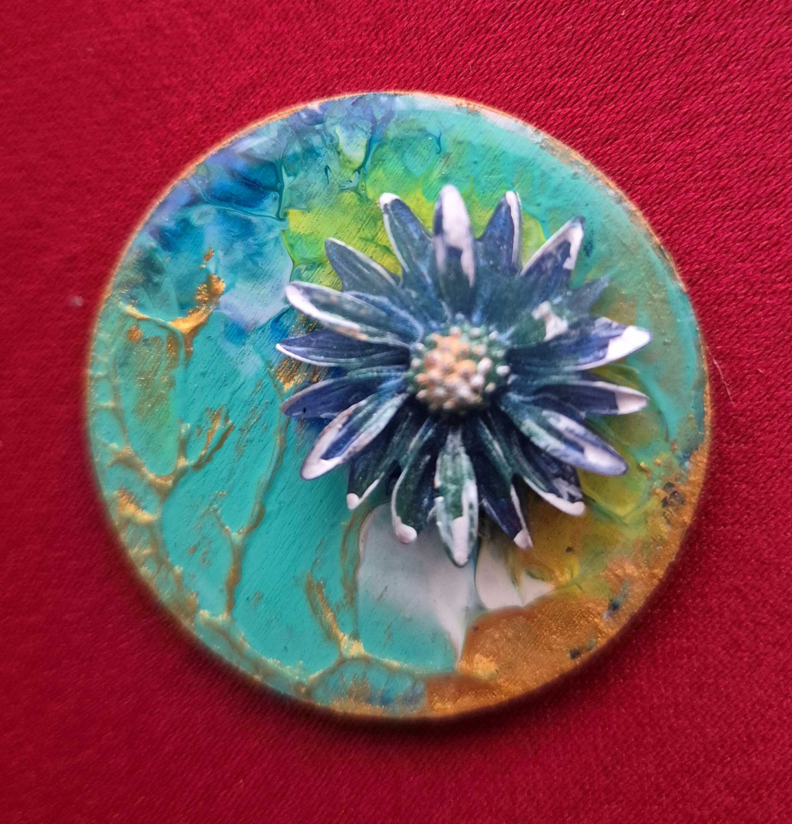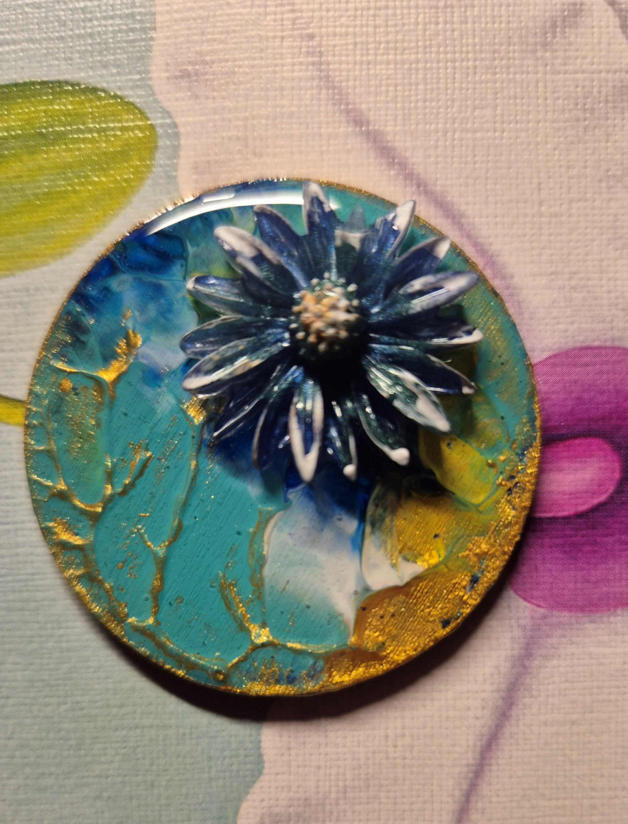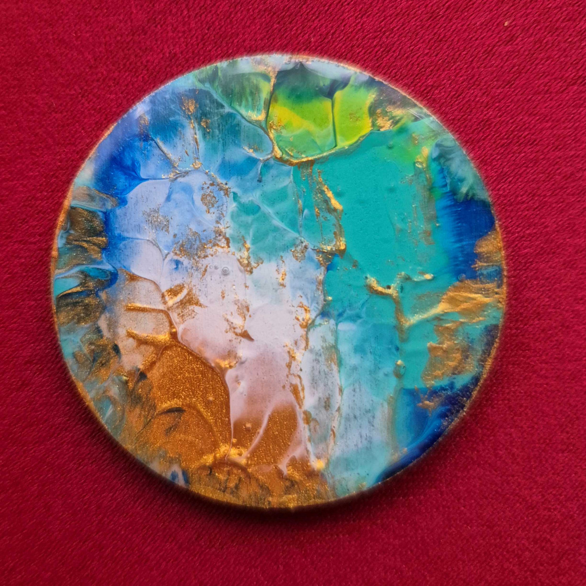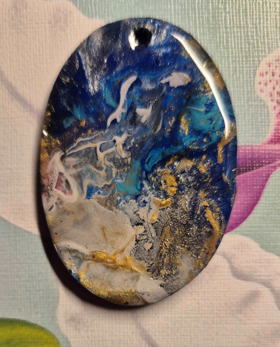 Pictură pe lemn, încapsulată cu rășină epoxidică.